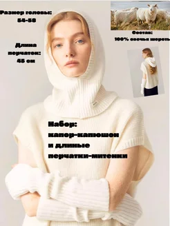Набор капор-балаклава и длинные перчатки-митенки из шерсти