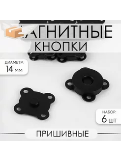 Кнопки магнитные, пришивные, d = 14 мм, 6 шт, цвет чёрный ма