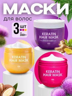 Маска для волос восстанавливающая с кератином для роста 3 шт
