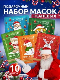 Тканевые маски для лица набор 10 шт, подарок на новый год же…