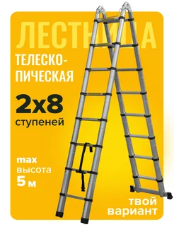 Лестница стремянка телескопическая выдвижная 2х8 Мал Удал 5м