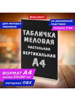 Табличка меловая А4, вертикальная, на деревянной подставке
