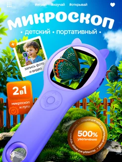 Микроскоп детский карманный с камерой и подсветкой лупа