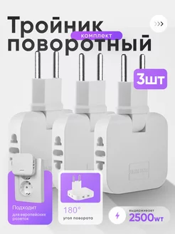 Тройник для розетки плоский поворотный разветвитель 2500Вт