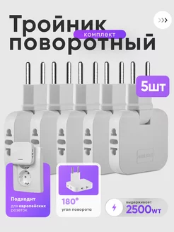 Тройник для розетки плоский поворотный разветвитель 5 шт