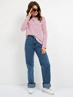 Тельняшка в полоску лонгслив с яркой горловиной