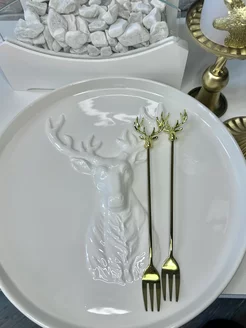 вилки десертные голова оленя 2 шт новогодняя сервировка