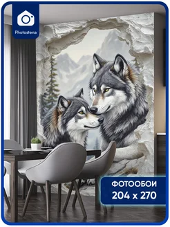 Фотообои флизелиновые 3D Волки в каменной скале