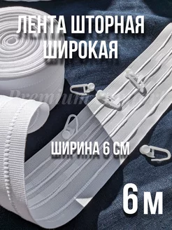шторная лента под крючки белая 6 см.- 6 метров