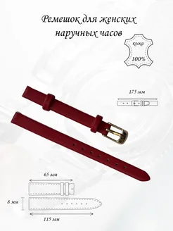 Ремешок для часов STR08SRG красный, гладкий, 8 мм