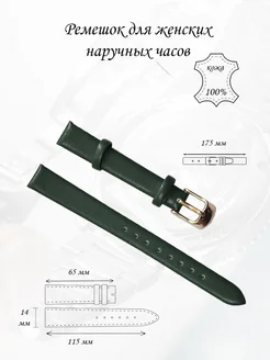 Ремешок для часов STR014SGG зеленый, гладкий, 14 мм