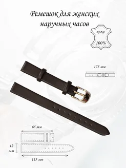 Ремешок для часов STR012SBRG коричневый, гладкий, 12 мм