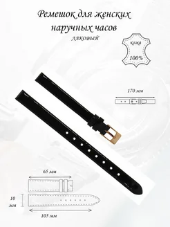 Ремешок для часов STR10LBLG черный лаковый 10 мм