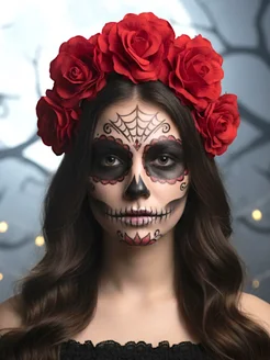 Ободок с цветами черный с красным на девичник и хэллоуин