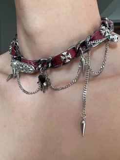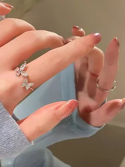 Кольца накладные ногти с цепочкой 5 шт. y2k