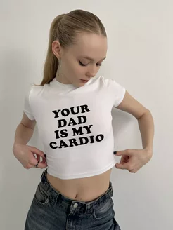 Кроп топ с принтом Your Dad is my cardio Футболка y2k аниме