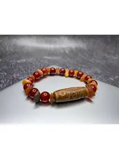 Браслет с Дзи 9 глаз из натуральных камней сердолик янтарь