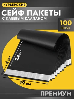 Курьерский почтовый пакет 19х24 см, 190х240 черный. 100 штук