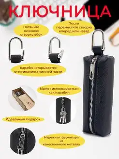 Ключница карманная кожаная на молнии для ключей до 14 см