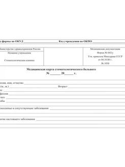 Карта медицинская стомат, А5, обл.карт, форма 043 У-№1030