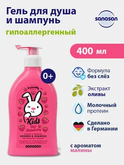 Гель для душа детский без слез гипоаллергенный Малина 400 мл