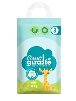 Подгузники Giraffe Classic детские M 6-11 кг 60шт