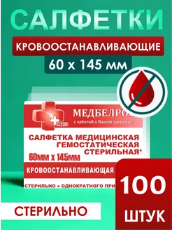 Гемостатическая салфетка, кровоостанавливающая. 100шт