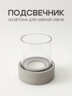 Подсвечник из бетона с прозрачной колбой для чайной свечи