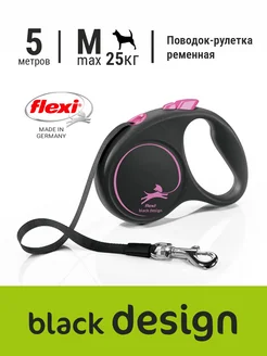 Поводок-рулетка для собак BLACK DESIGN, ремень (M) 25кг 5м