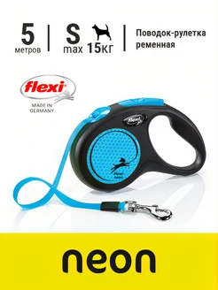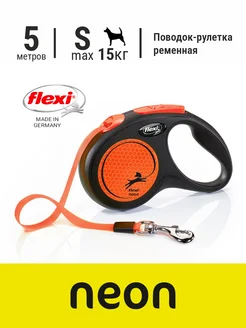 Поводок-рулетка для собак NEW NEON, ременной (S), 15кг 5м