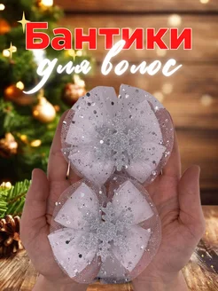 Бантики для волос новогодние белые со снежинкой на утренник