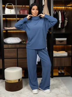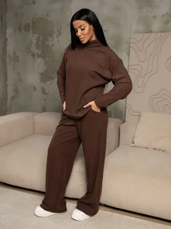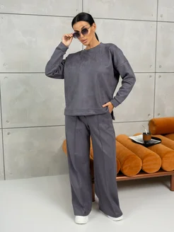 Костюм спортивный со штанами палаццо и свитшотом оверсайз