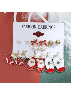 Серьги новогодние набор подарок 2026 Дед Мороз