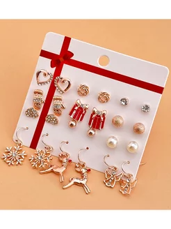 Серьги новогодние набор подарок 2026 12 пар
