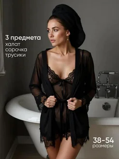 Халат кружевной комплект с сорочкой и трусиками домашний