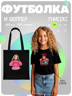 Комплект Футболка и Шоппер с модным принтом Мерч Света Кемер