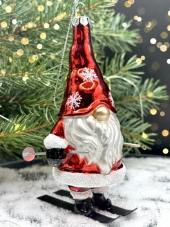Елочная игрушка Гном на лыжах