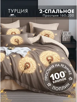 Постельное белье 2 спальное 160х200 на резинке одуванчик