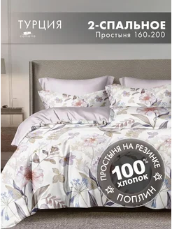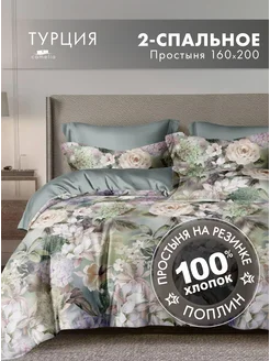 Постельное белье 2 спальное 160х200 на резинке с цветами