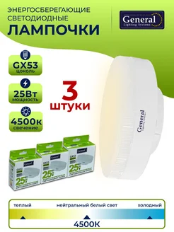 Лампа светодиодная GX53 25 Вт 4500К таблетка 3 штуки