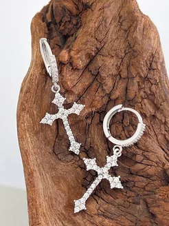 Серьги кресты с камушками