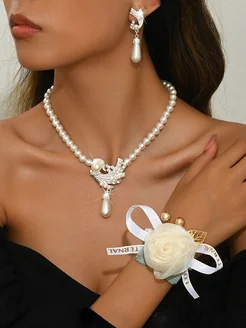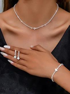 Колье с серьгами и браслетом бантом
