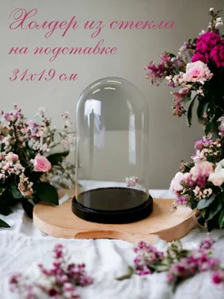 Колпак стеклянный на подставке из дерева для хранения вещей