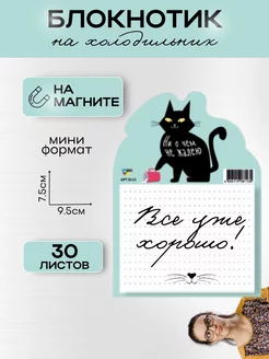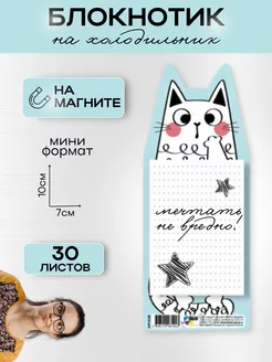 Мини блокнот на холодильник магнитный, блокнотик с котиком