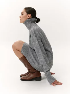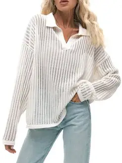 Кофта оверсайз удлиненная паутинка вязаный свитер поло