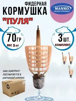 Кормушка фидерная рыболовная "Пуля" 70 грамм 3 шт