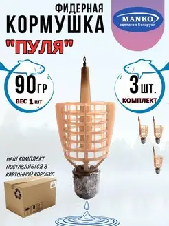 Кормушка фидерная рыболовная "Пуля" 90 грамм 3 шт