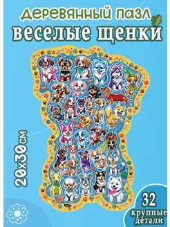 Деревянный пазл фигурный в рамке "Веселые щенки"