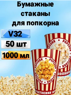 Стакан для попкорна бумажный Классика 1л. 50 шт. V32