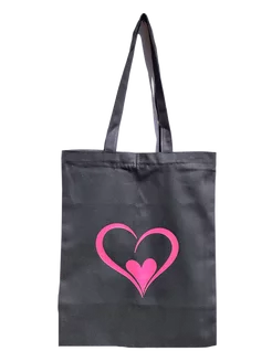 Сумка шоппер 34х40 черная на молнии с принтом 2 роз сердца